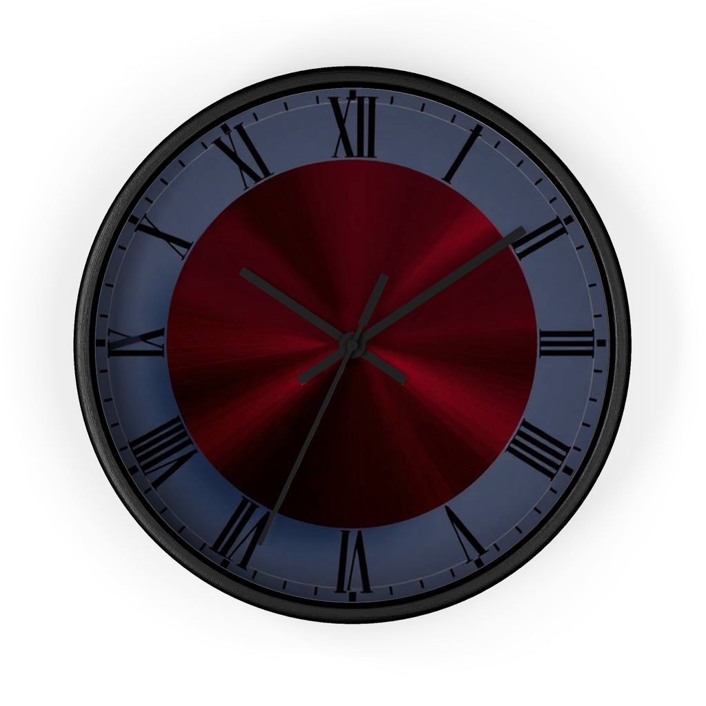 Burgundy and Deep Blue Design Elegant Wall Clock, Home Decor, Wall Art