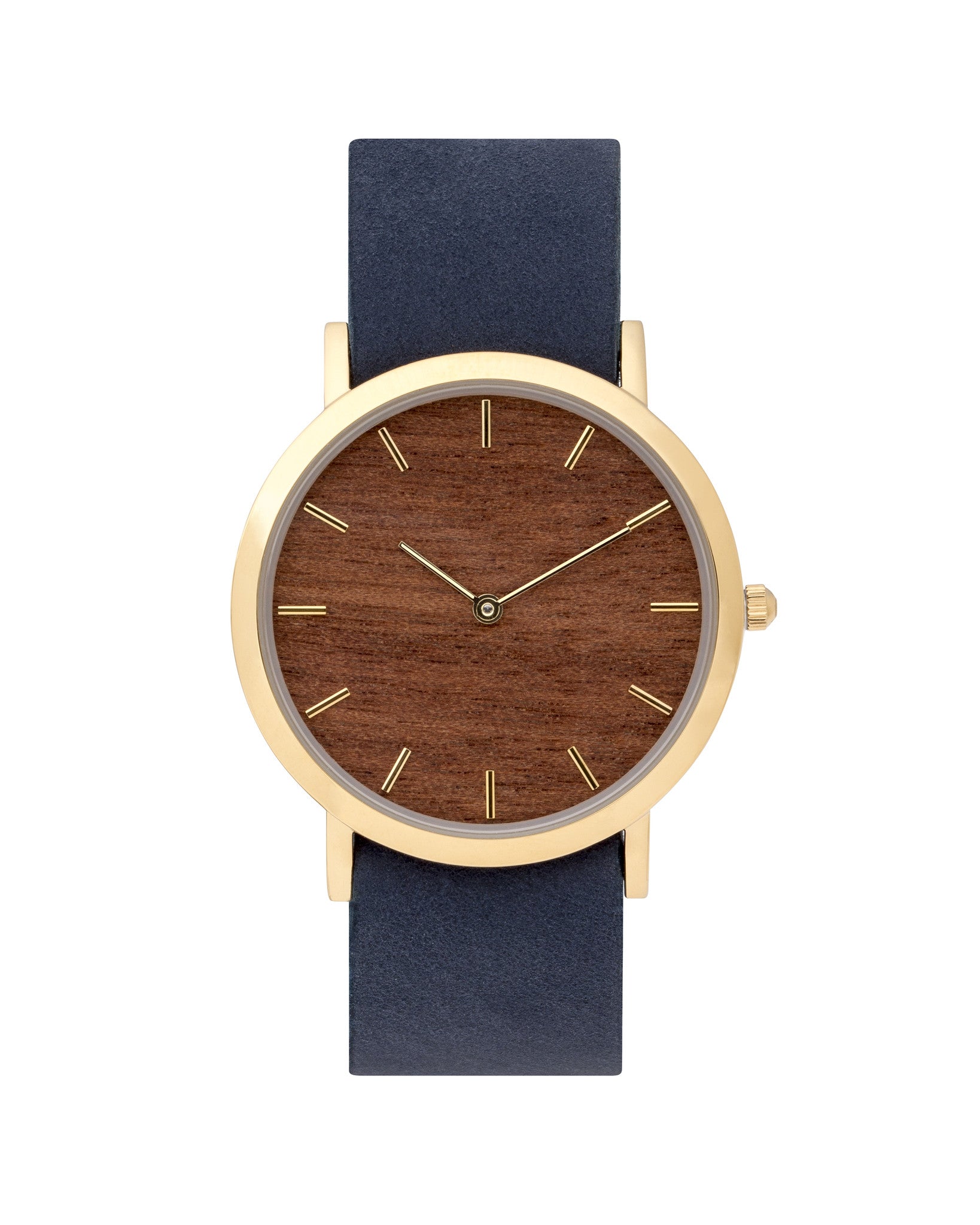 To showcase the simple design, we've kept branding to an absolute minimum. The delicate hands move effortlessly along an unmarked face, revealing the wood grain unique to each and every piece.